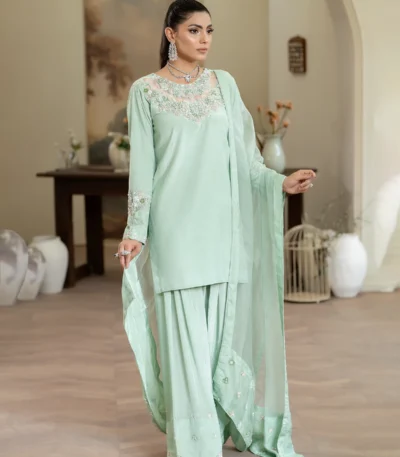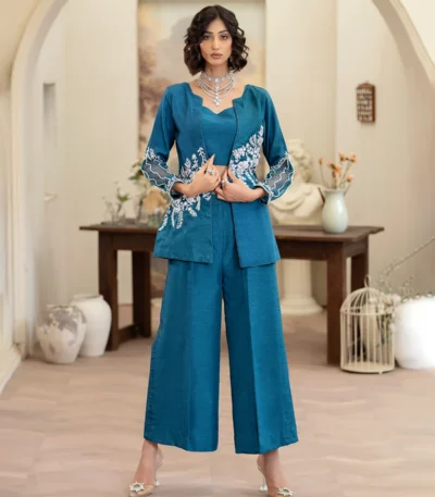 ₨38,500.00Fabric: Raw Silk Blouse, Satin Silk Trouser, Crushed Sharara