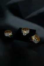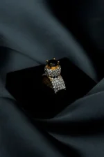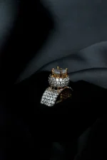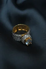 Elevate your look with the Majestic Aurora Ring, a masterpiece of bold elegance and royal flair. Designed with intricate crown-inspired detailing and studded with radiant stones, this ring is made to turn heads. |