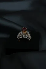 The Crown Jewel Ring is a true embodiment of royal luxury. Its luminous gemstone is framed in fine crystals, creating a regal sparkle that elevates every look from classic to contemporary |