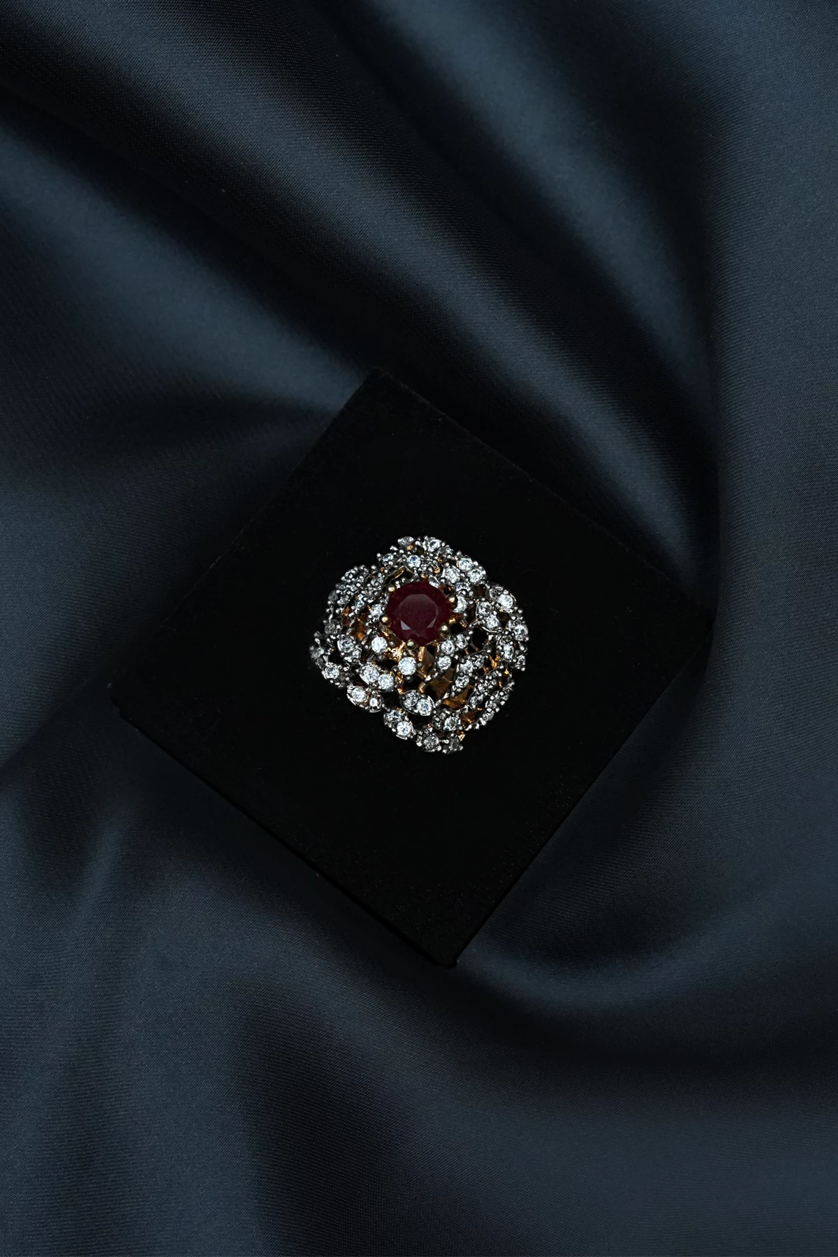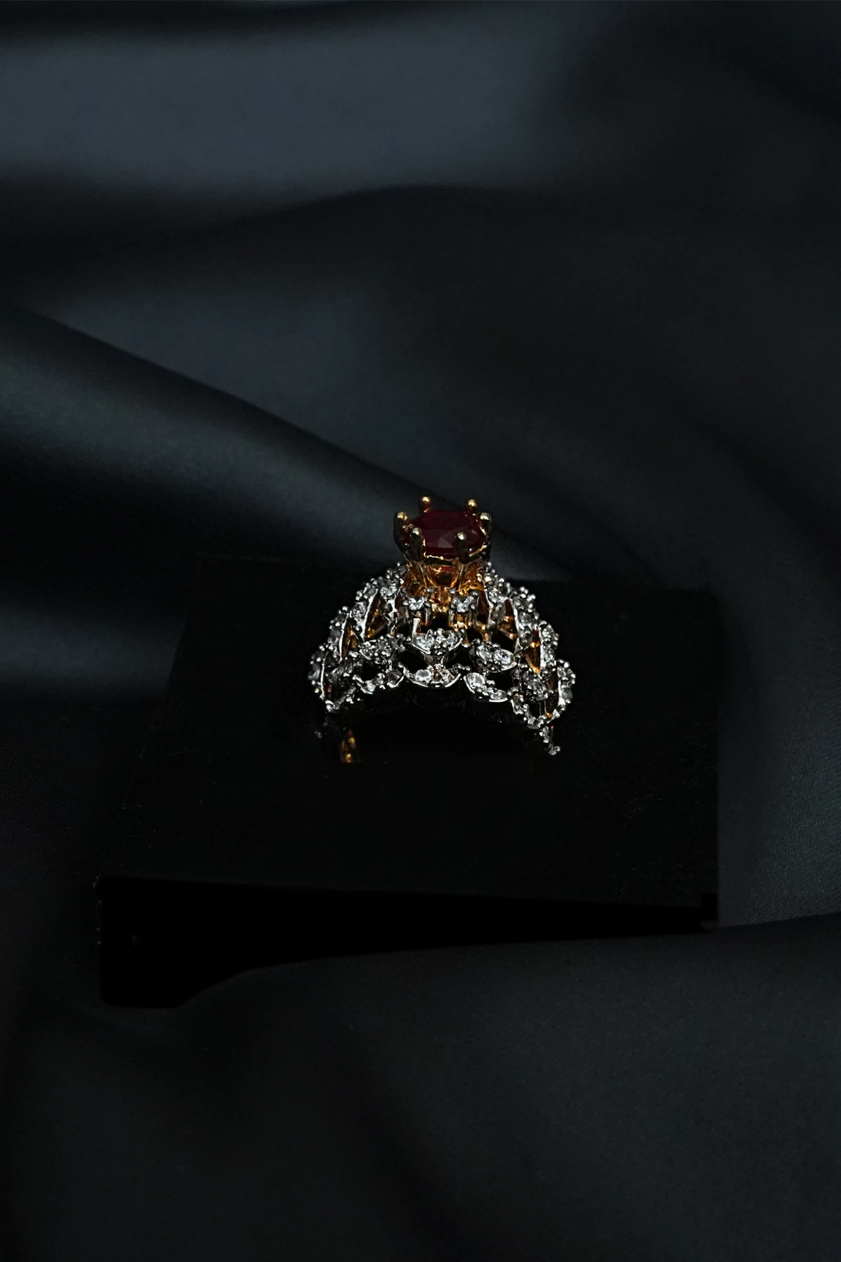 The Crown Jewel Ring is a true embodiment of royal luxury. Its luminous gemstone is framed in fine crystals, creating a regal sparkle that elevates every look from classic to contemporary |